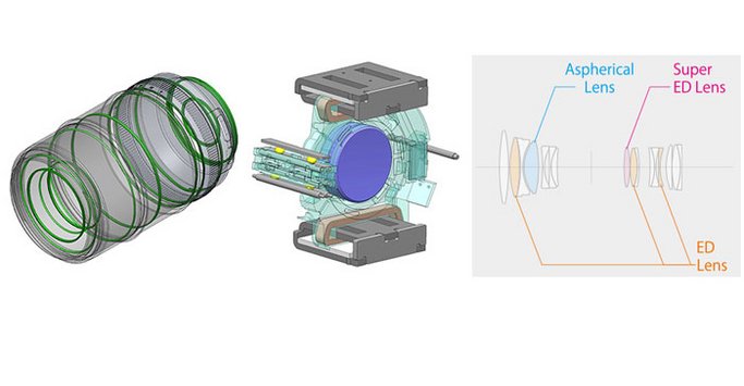 optyczna obiektywu obejmuje 16 elementów w 12 grupach, zawiera jedną